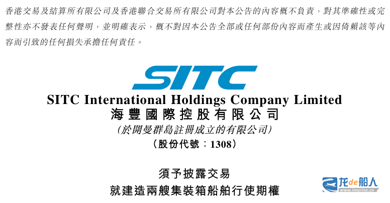4月29日,海丰国际控股有限公司(以下简称“海丰国际”)发布《须予披露交易就建造两艘集装箱船舶行使期权》公告。