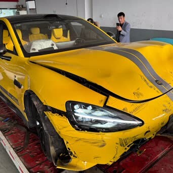 近日,小米SU7Ultra看样子撞的挺狠,车头受损严重,车内安全气囊都弹了,万幸是在赛道里面撞的,可见1548匹马力真不是开玩笑。